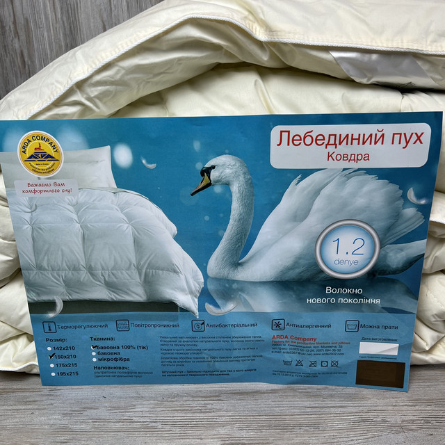 Ковдра зі штучного лебединого пуху "АРДА" Розмір Півторашній 150*210 см. Зимова тепла ковдра